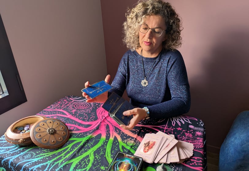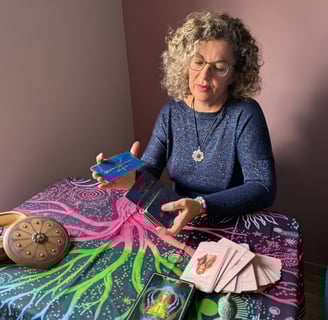 Voici comment se passe une séance de guidance avec moi : j'utilise différents oracles et tarots. J'ai bien sûr mes chouchous, mais je les aime tellement que j'en ai un certain nombre. J'utilise aussi mon pendule pour des questions précises. Enfin, je choisis selon mon intuition, quelques pierres qui ont toujours des messages à vous délivrer et qui sont complémentaires au tirage.